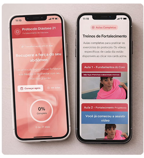 O protocolo completo para fechar sua diástase, recuperar a firmeza abdominal e voltar a se sentir confiante no seu corpo — sem culpa, sem pressa
