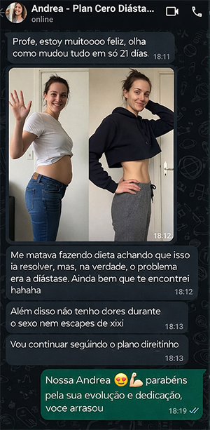 "Minha diástase de 4 dedos fechou para 1 dedo em 2 meses! Finalmente entendi o que estava errado e consegui resultados de verdade."
